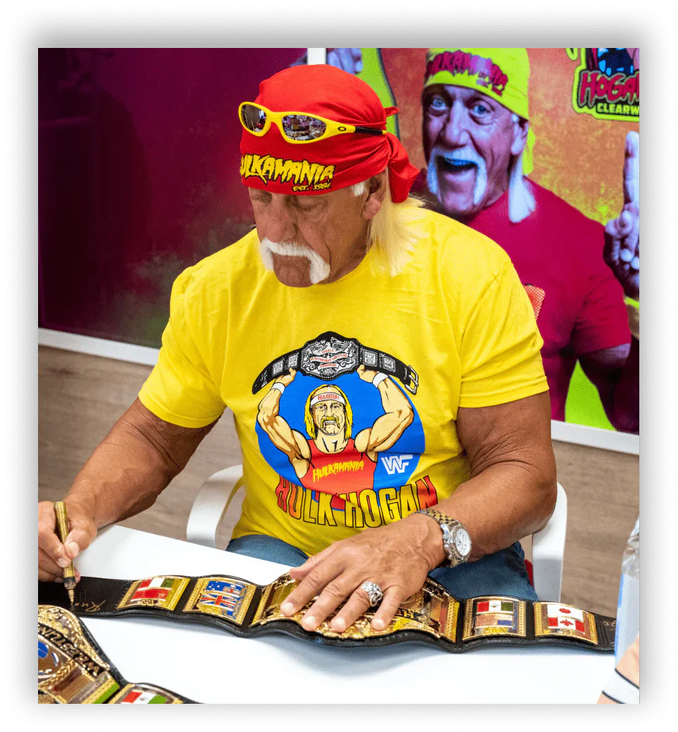 Want something real special? Check out my exclusive collection of signed items. Each piece is hand-signed by yours truly, making it a one-of-a-kind item for all you Hulkamaniacs out there! So don't wait, get your hands on these pieces today!
