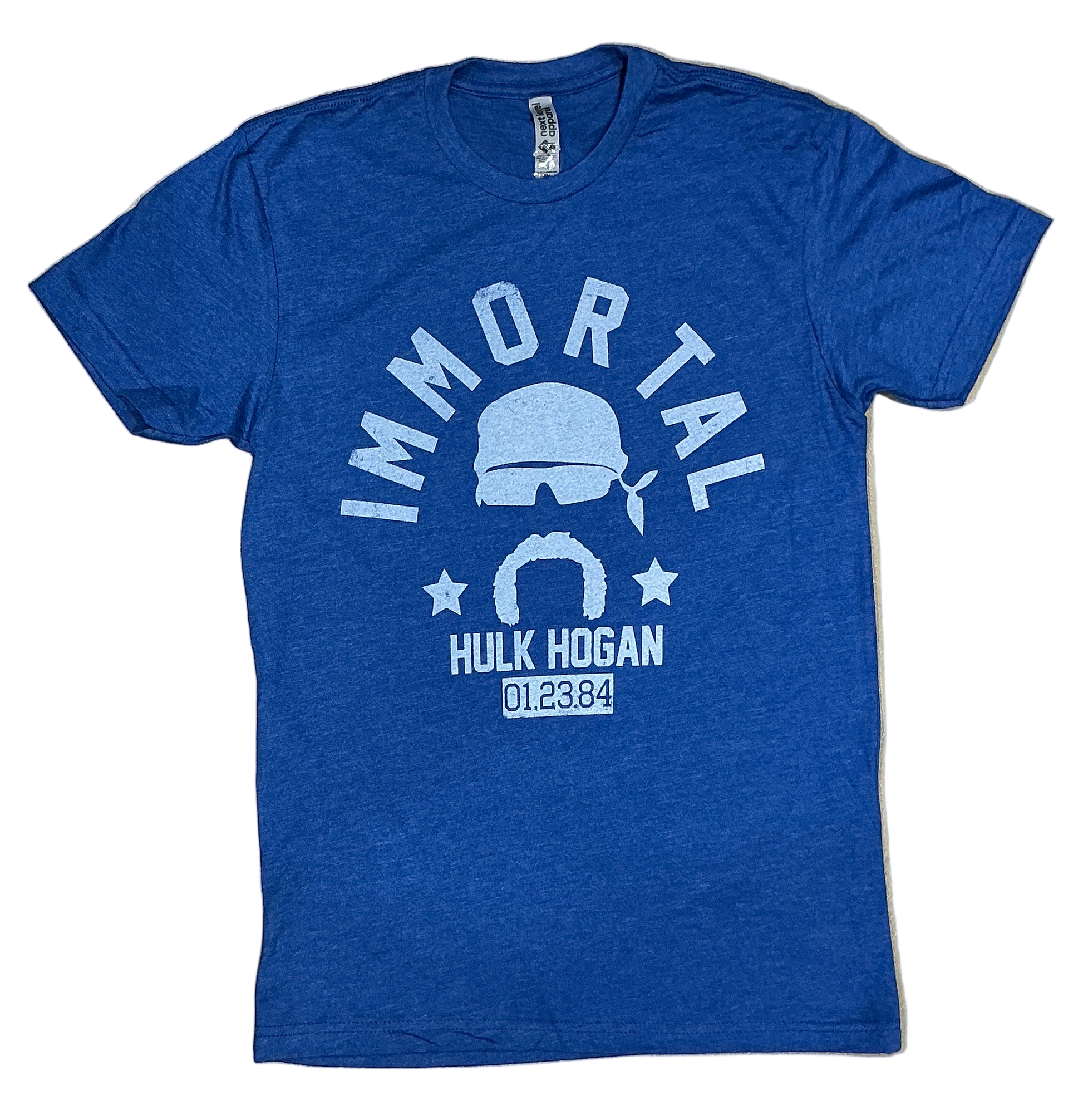 On the Immortal Hulk Hogan Tee, the Hulkster is rockin' his iconic sunglasses and mustache, with the word “IMMORTAL” arched above him.