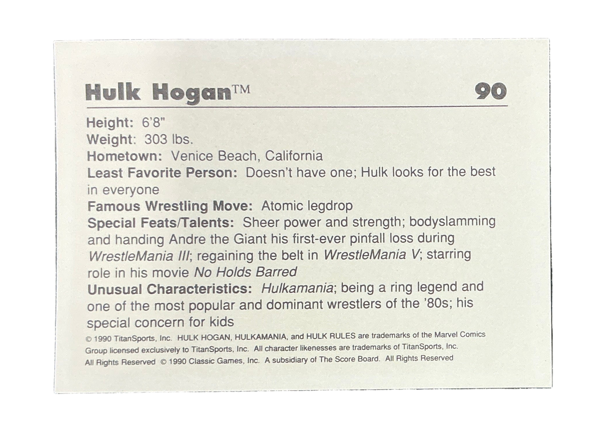 Classic WWF Hulkamania #90 Trading Card - UNSIGNED