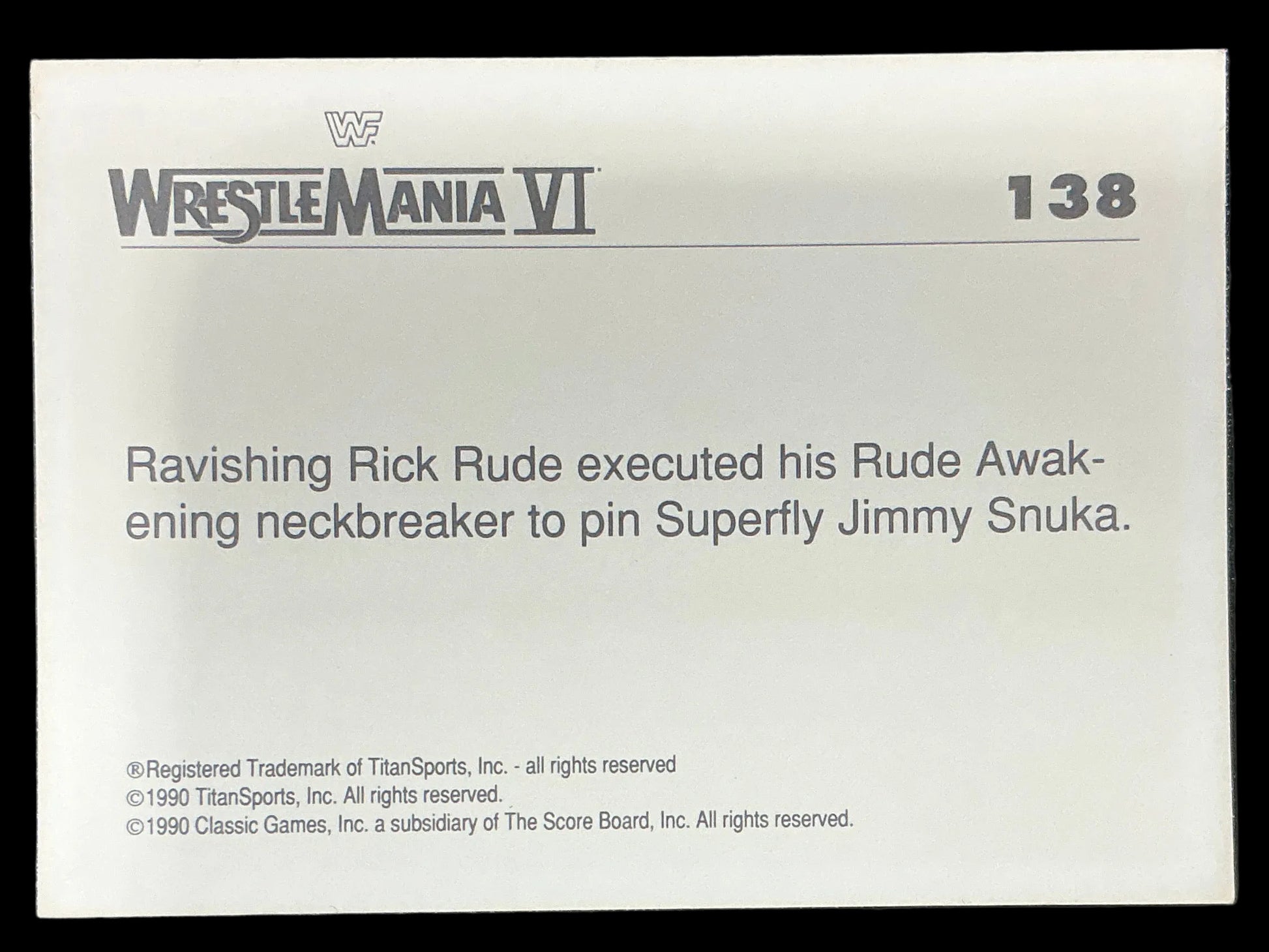 Classic WWF WrestleMania VI #138 Trading Card