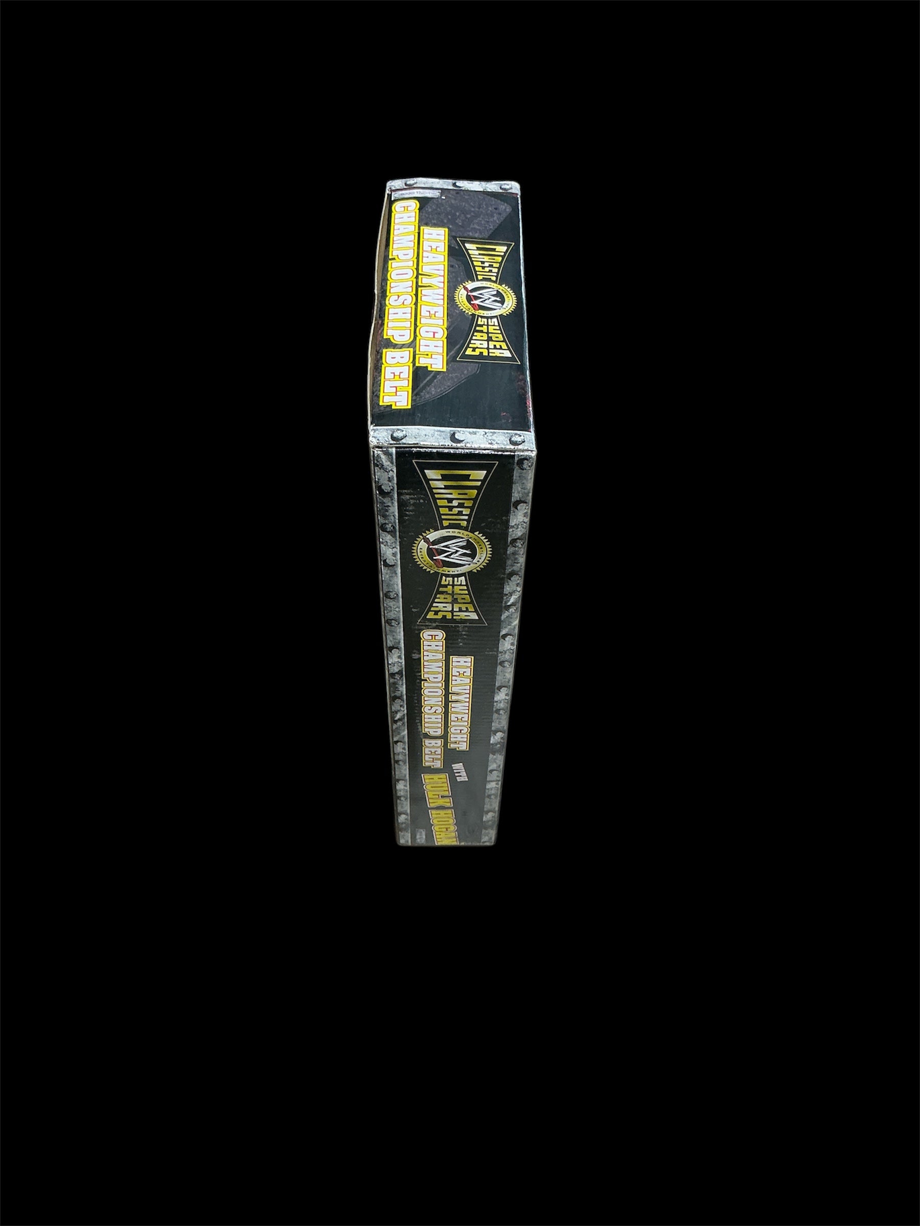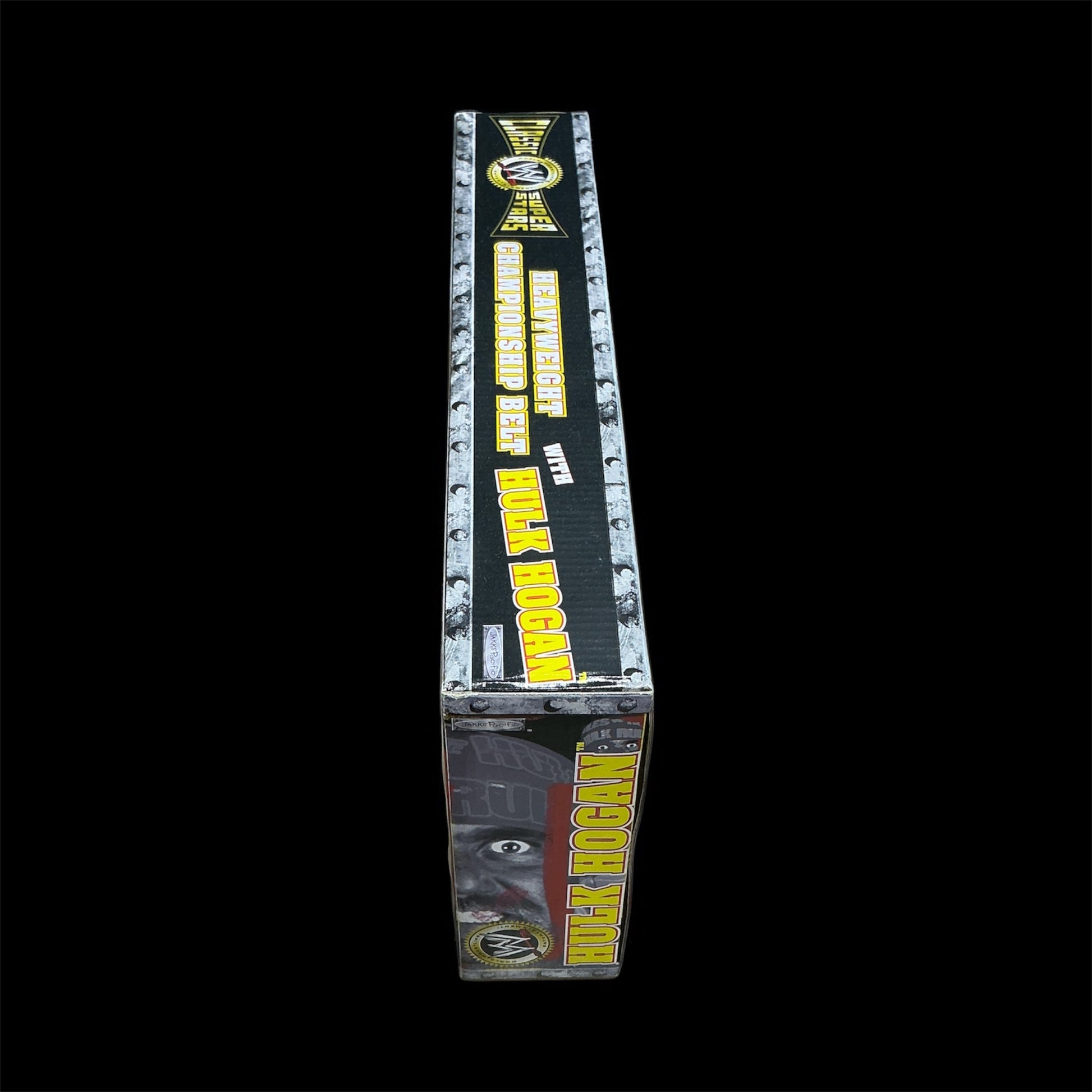 This Classic WWE Superstars Heavyweight Championship Belt Autographed Figure and Belt is a throwback to the days of slamming giants and leg dropping the Iron Sheik. The Hulkster is rocking his Hulk Rules tank top and 24" pythons. Because it is preserved in its original packaging, this bit of memorabilia from WWE's Adrenaline Series 17 collection is a real collectible. To top it off, it is autographed by the Hulkster himself, which says, "Hulk Hogan; HOF '05'” The belt is a black and gold colored replica of the Eagle World Championship Belt from the 1980’s. The waist is adjustable. This is an iconic belt that has carried over from the Hulkamania era to the New Generation.