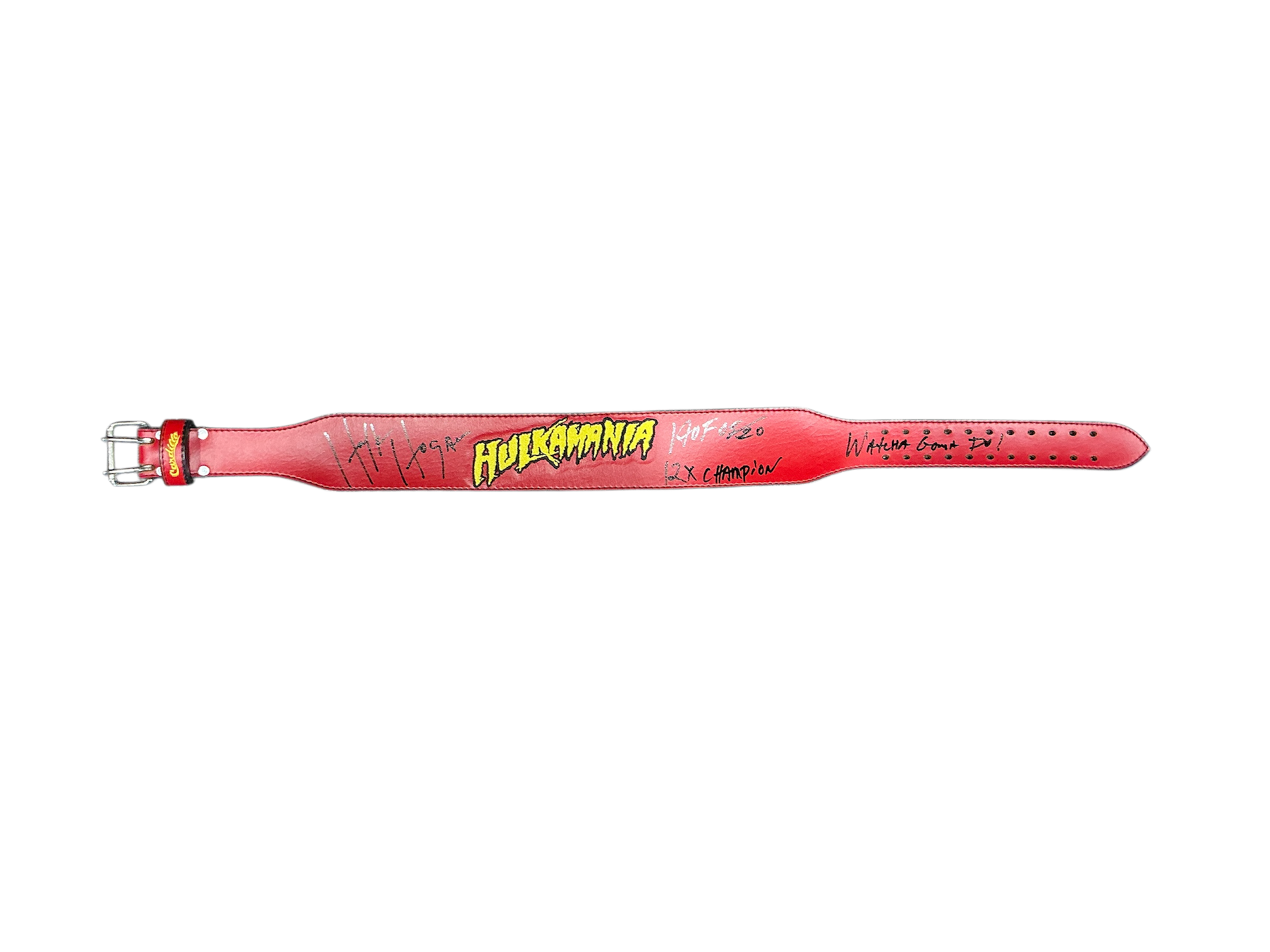 Inscription: “Hulk Hogan” “HOF05/20” “12x Champion” “Watcha Gonna Do”