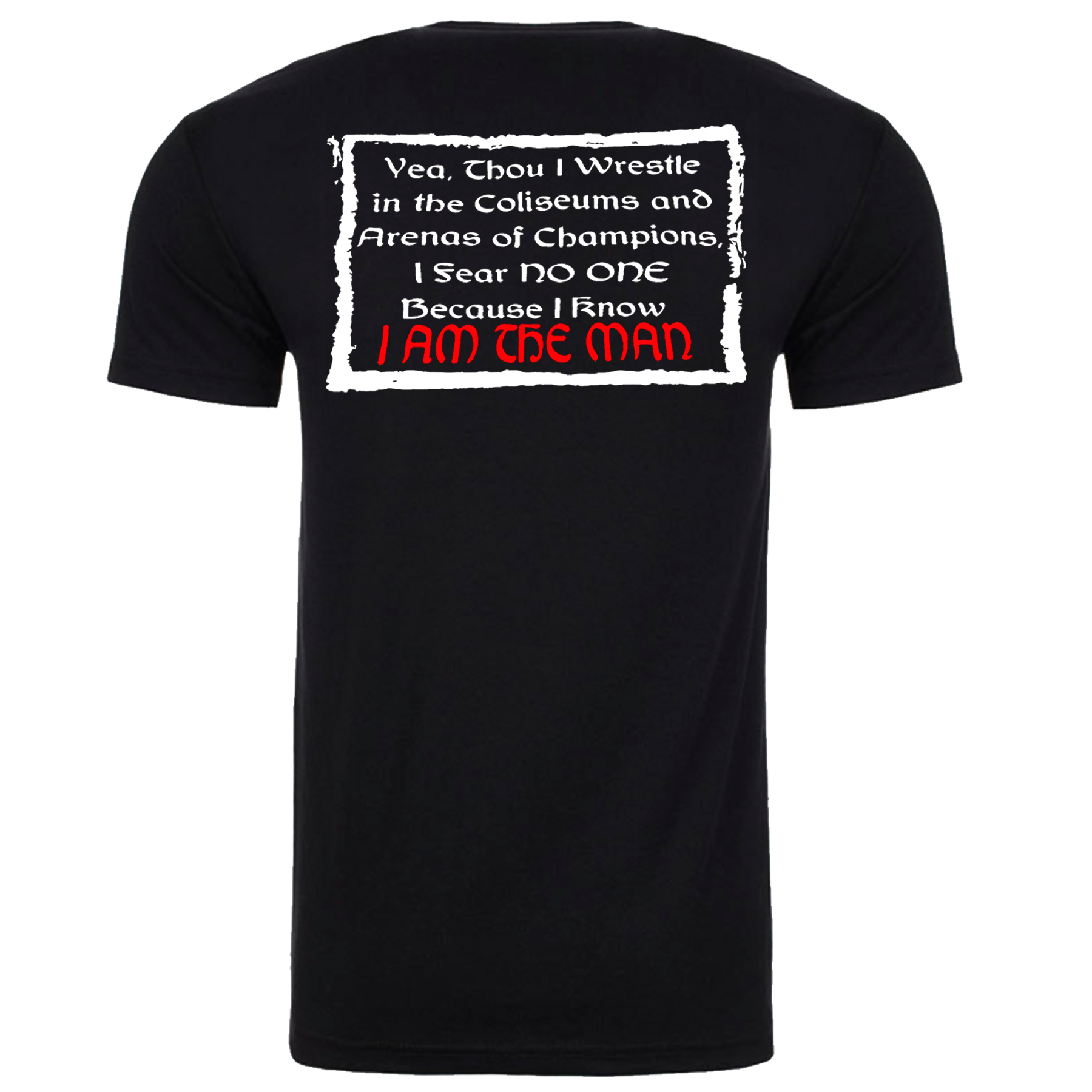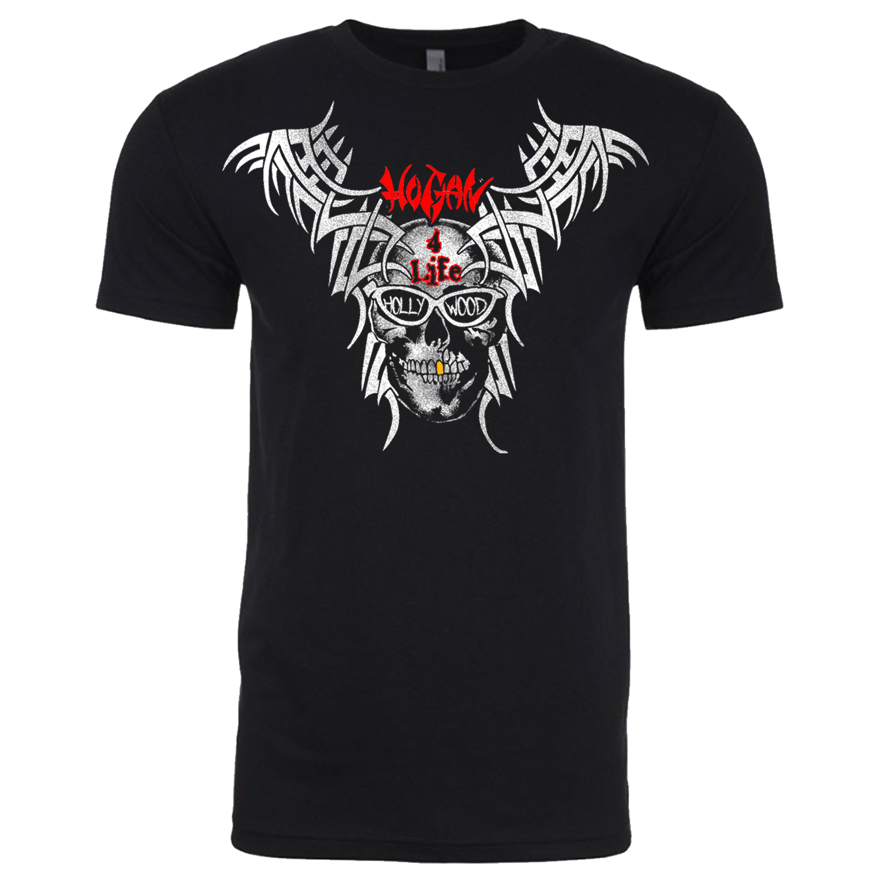 The Tribal Skull Hogan 4 Life Tee incorporates an unique design that is sure to impress. The back of the tee also has a quote that reads "Yea, thou I wrestle in the coliseums and arenas of champions, I fear NO ONE because I know I AM THE MAN".