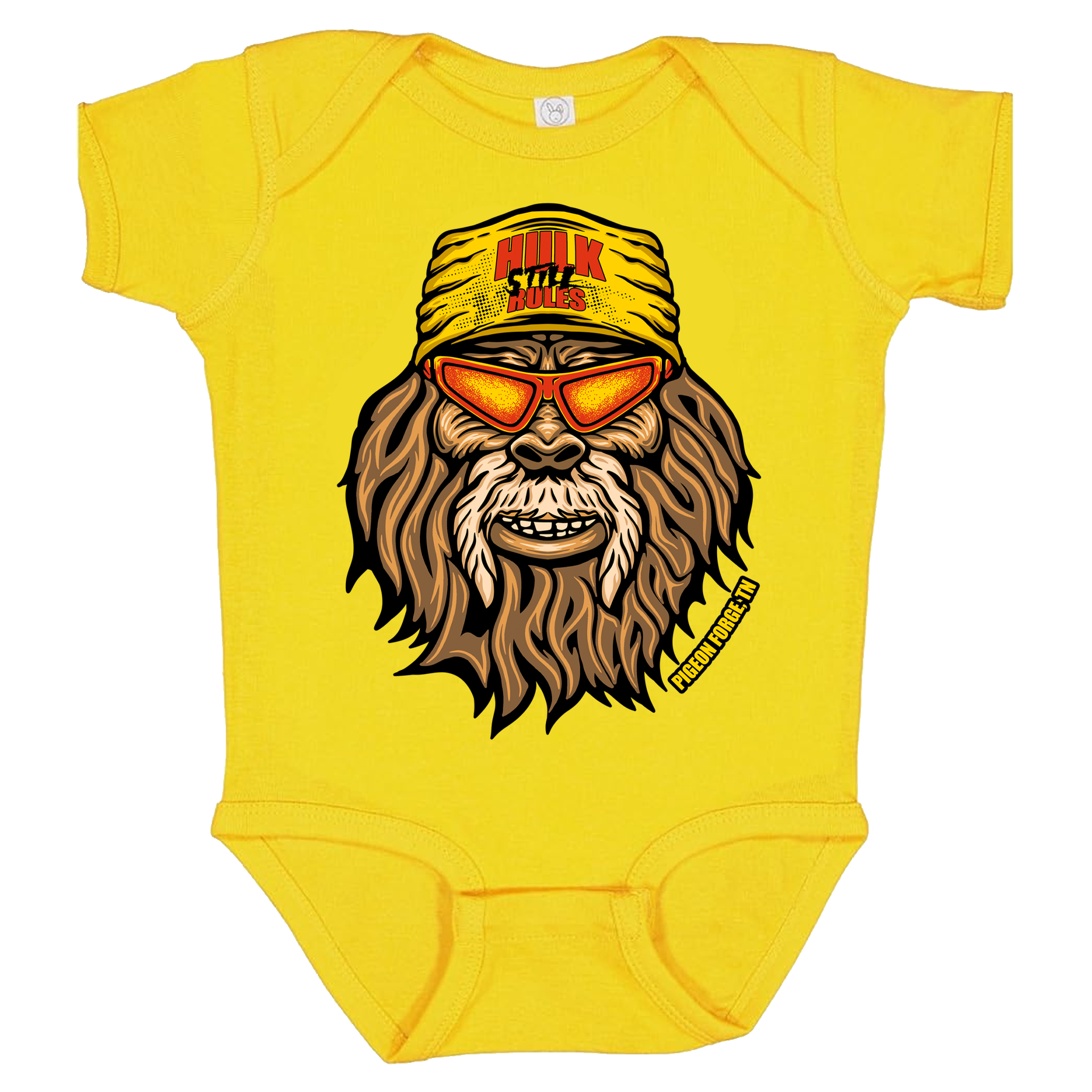 Hulk Still Rules hulksquatch tee-shirt for newborns aims to channel the wild side in kids. With the famous bright yellow of the Hulk Brand and our Hulksquatch logo, Pigeon Forge, TN. brings you HULKSQUATCH. OH YEAHHHH, BROTHER!!